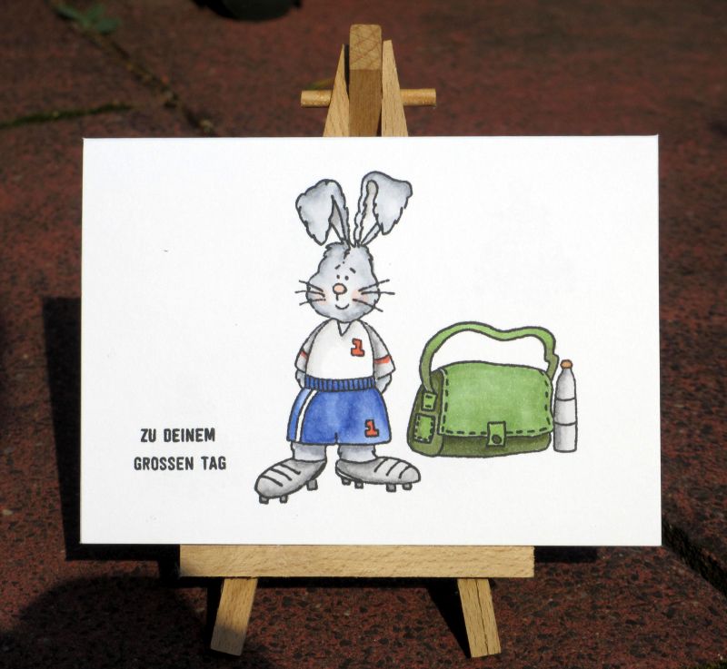 Coloration: Copics (Häschen: C0, C 1, C 2, C 4, R 20; Schuhe/Flasche: T 3, N 0, N 2, N 4, E 33; Tasche: G 21, G 24, G 82, G 85, G 99; Trikot: R 14, B 63, B 66)